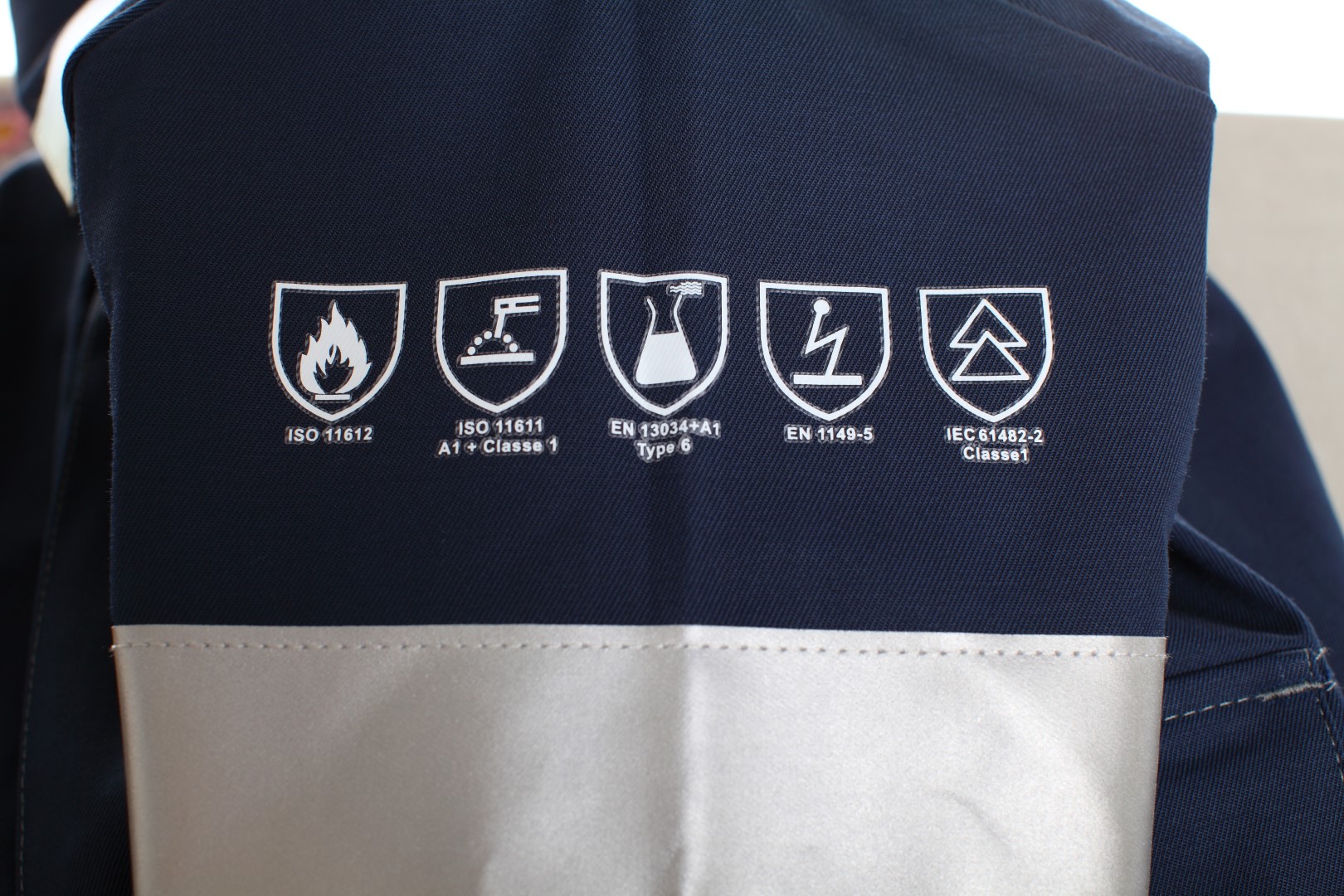 In terms of regulatory requirements, it delivers high performance by meeting the following standards: ISO EN 11611 Class 1 + A1 – ISO EN 11612 A1 B1 C1 E1 F1 – EN 1149-5 – EN 13034 + A1 type 6 – IEC 61482-2 Class 1. The logo markings on the upper left sleeve of TechProtect® models make these standards even more visible, for immediate understanding.