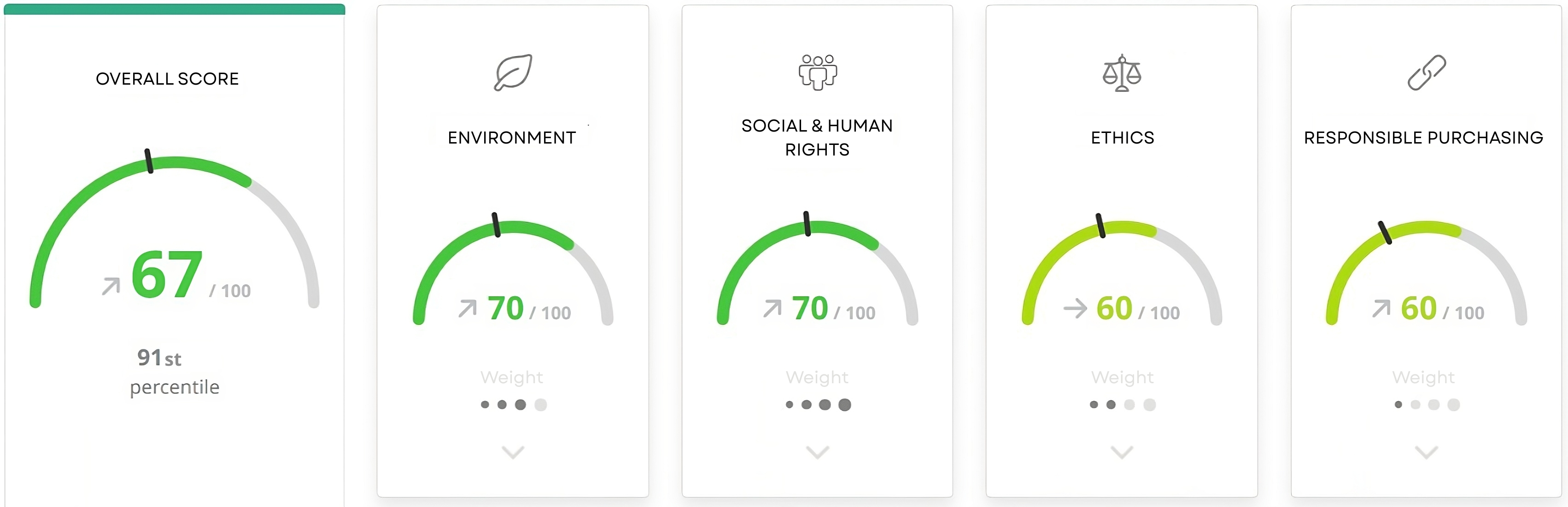 Out of the 498 companies in the same sector that were assessed, we are among the TOP 20, having obtained a score between 65/100 and 85/100 🏆.