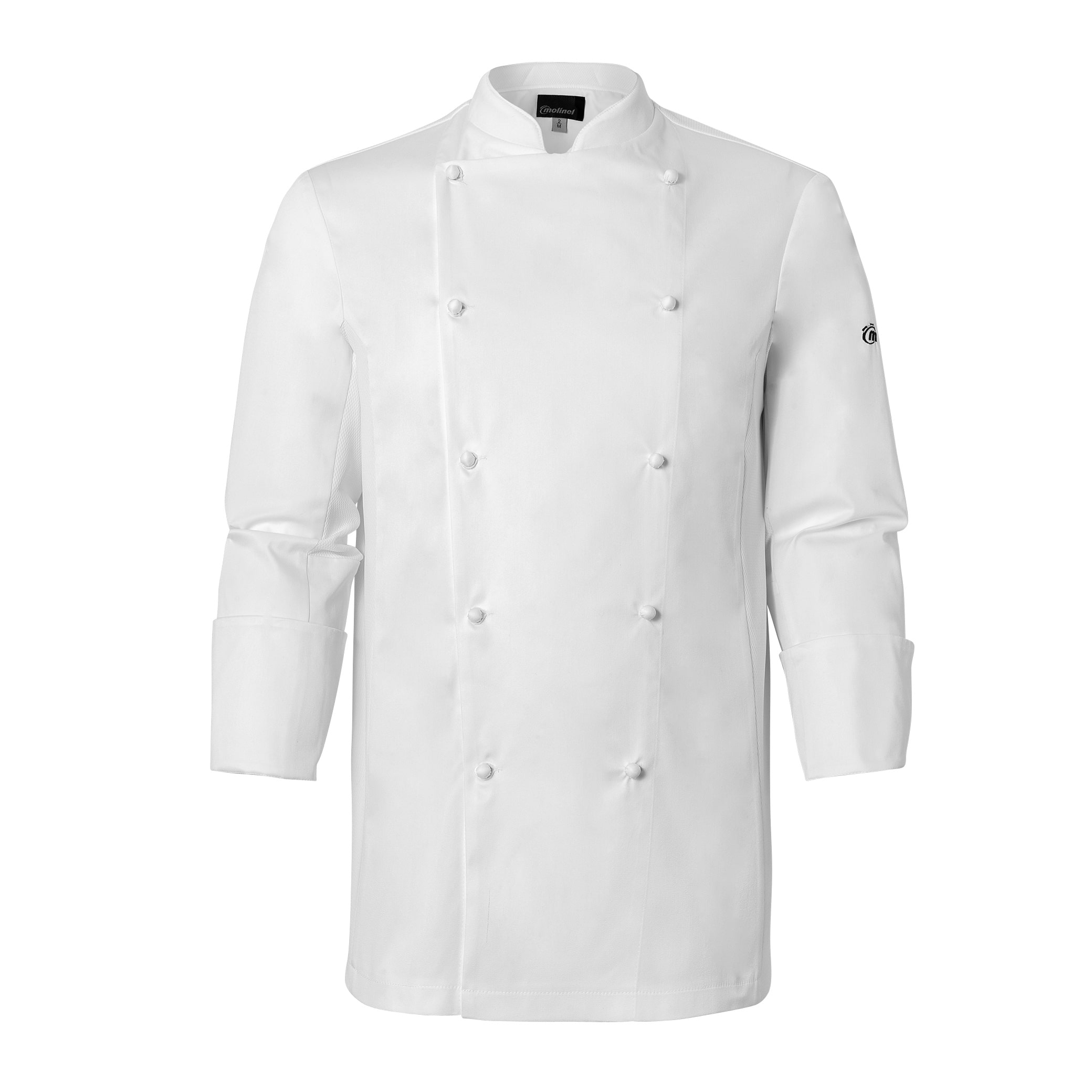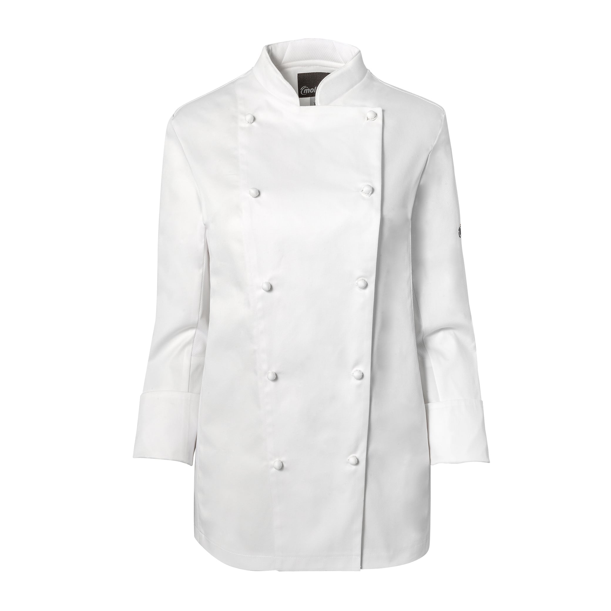 Style rhymes with subtlety! The handmade ball buttons, reversible bib, and musketeer cuffs, essential features of the Grand Chef jacket, have been retained. The cut is tailored for a modern look without compromising on comfort, thanks to an eco-friendly stretch fabric. The MOLINEL embroidery and ribbon on the back of the collar feature the French tricolor to highlight the Made in France design and manufacture. It's also a nod to French gastronomy!