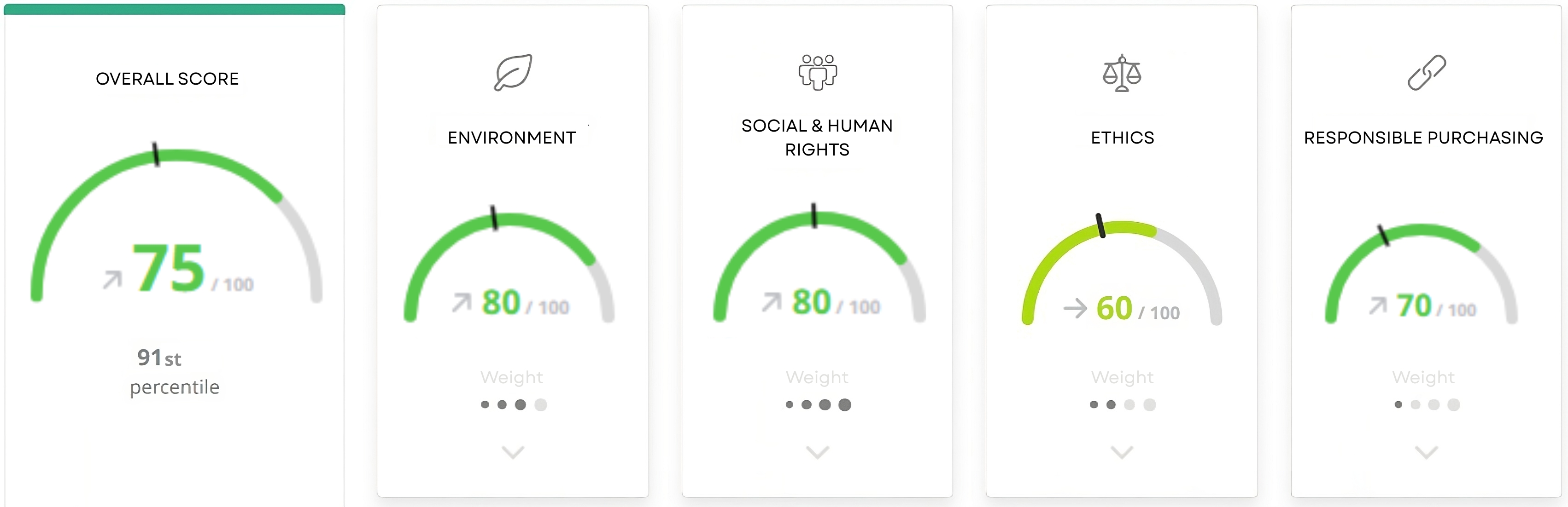 The ECOVADIS platform allows companies to be assessed on four sustainability themes: