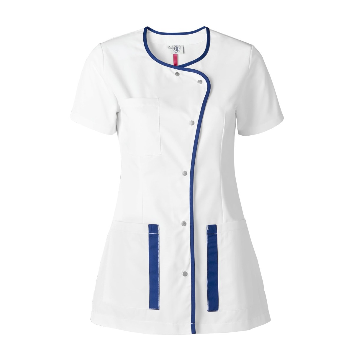 A short-sleeved women's tunic designed in an organic cotton/polyester warp and weft fabric which benefits from an active anti-bacterial finish. This model guarantees a feeling of cleanliness every day.