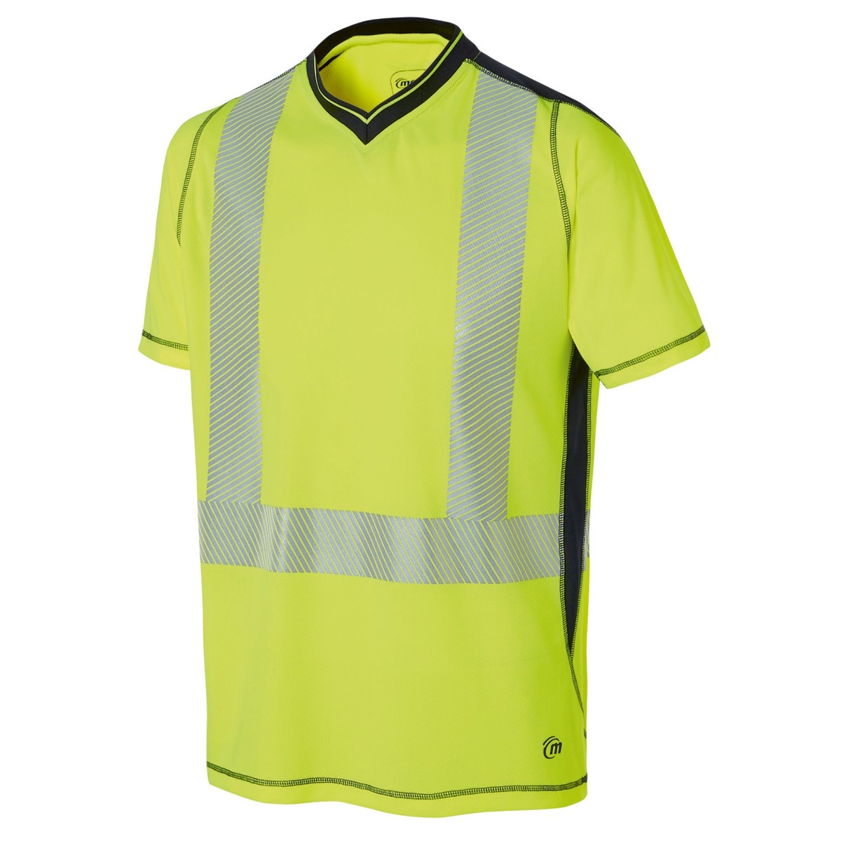 The new EN 20471 hi-viz short sleeve T-shirt is soft and comfortable due to the segmented strips, with great freedom of movement due to the flatlock seams. High UV performance with a protection factor of UPF40+.