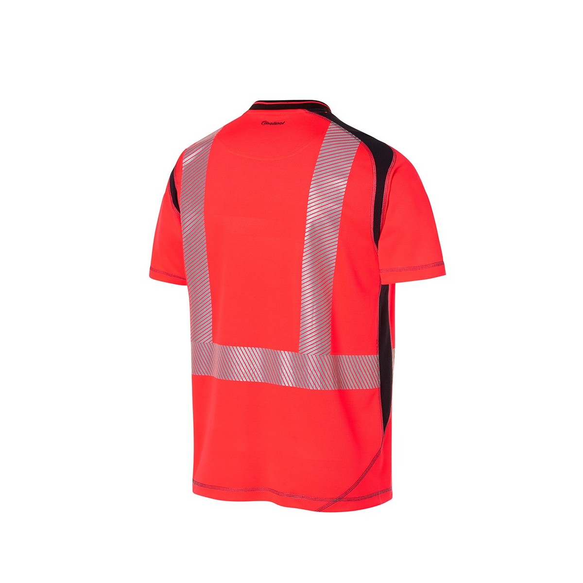 The new EN 20471 hi-viz short sleeve T-shirt is soft and comfortable due to the segmented strips, with great freedom of movement due to the flatlock seams. High UV performance with a protection factor of UPF40+.
