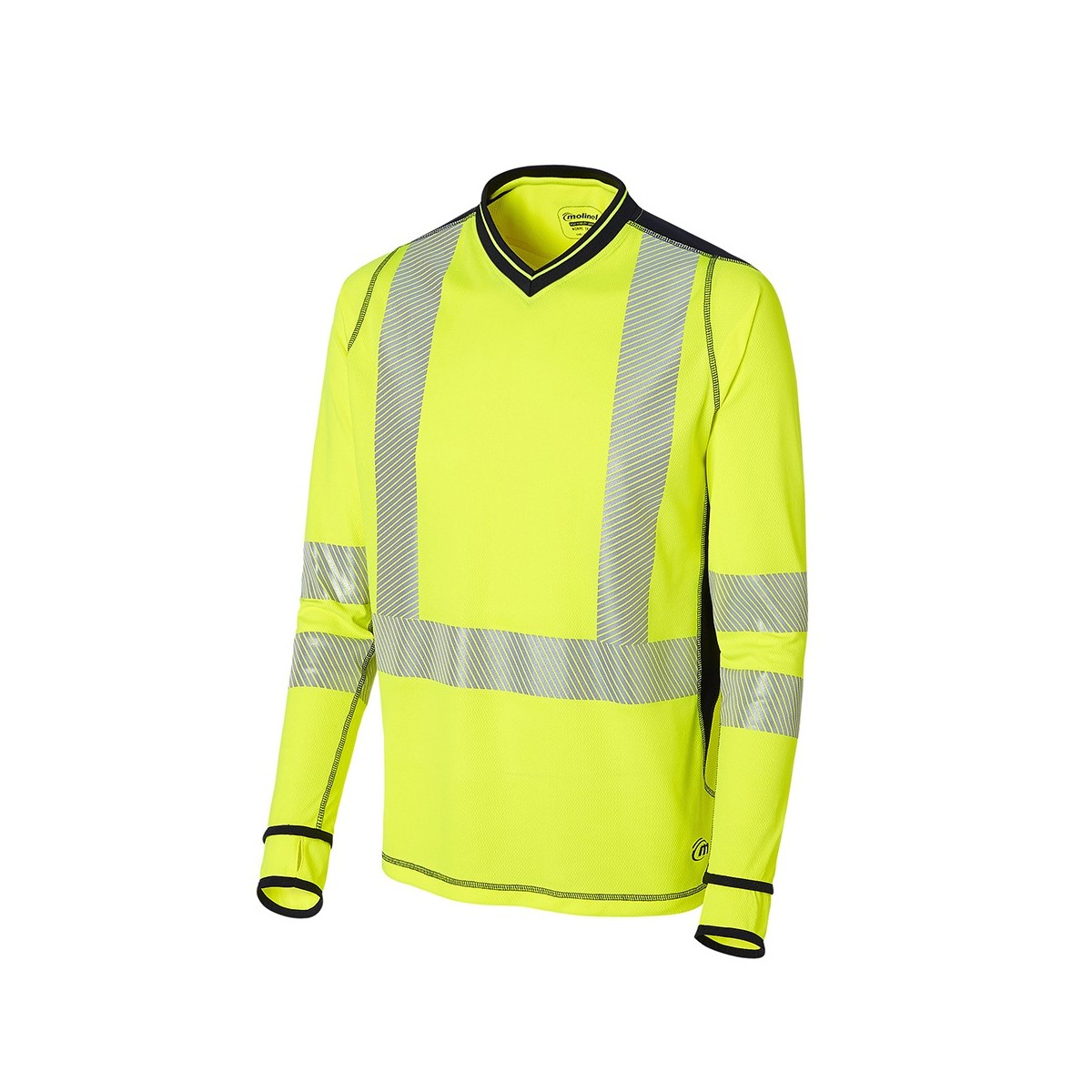 The new EN 20471 hi-viz short sleeve T-shirt is soft and comfortable due to the segmented strips, with great freedom of movement due to the flatlock seams. High UV performance with a protection factor of UPF40+.