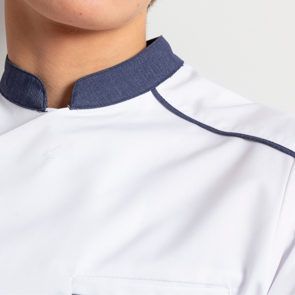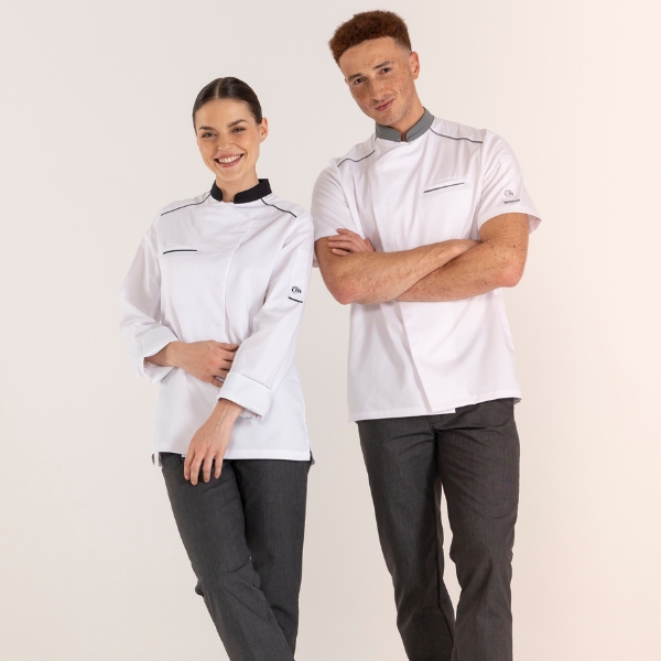 Version homme ou femme, manches longues ou manches courtes, la veste de cuisine NEOSPIRIT s’impose immédiatement par son design épuré. Plus graphique encore, la veste NEOSPIRIT fait l’objet d’une déclinaison dans un colorama tendance, associant le blanc en majeur aux couleurs noir, gris, denim ou encore terracotta. Autant de possibilités de combiner les modèles hommes et femmes pour des équipes ou des classes assorties…