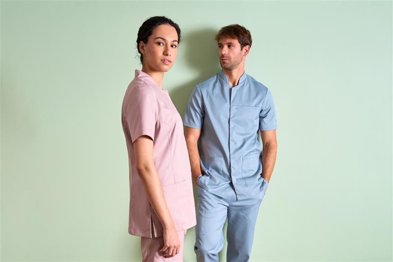 Déclinée en modèles homme et femme, avec tuniques et pantalons dissociables, la gamme permet d’équiper des équipes mixtes. Les coloris gris minéral et rose poudré ont été développés spécifiquement pour Kareline.