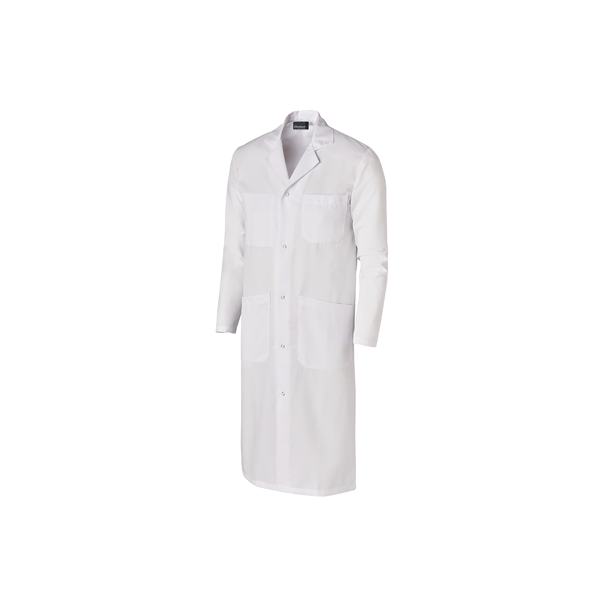 Col tailleur, manches longues, fermeture centrale par pressions, 2 poches basses, 1 poche poitrine, 1 poche intérieure, fente dos, hauteur 100 cm.
