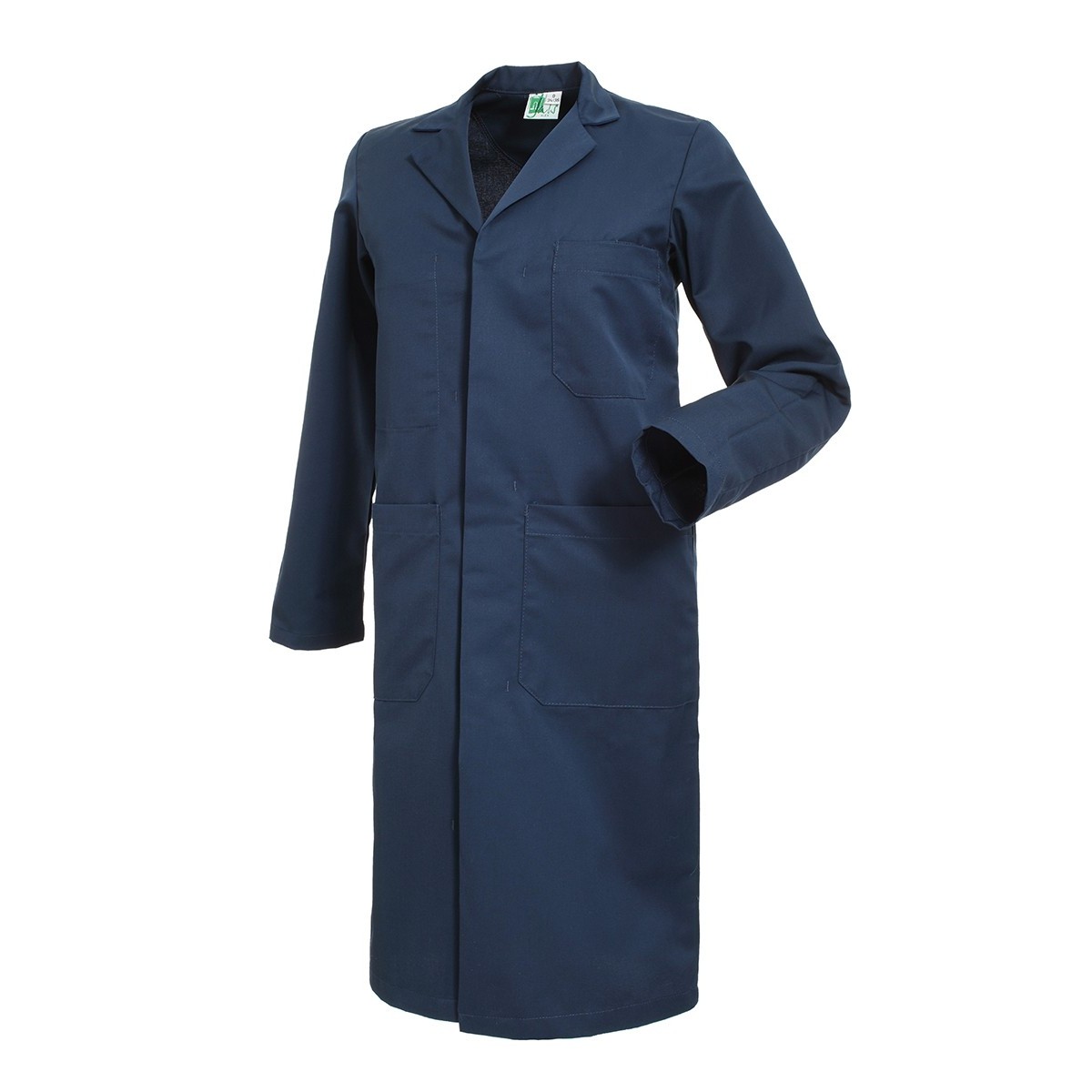Col tailleur, 1 poche poitrine, 2 poches basses, Fermeture devant par pression sous patte, Longueur : 100 cm