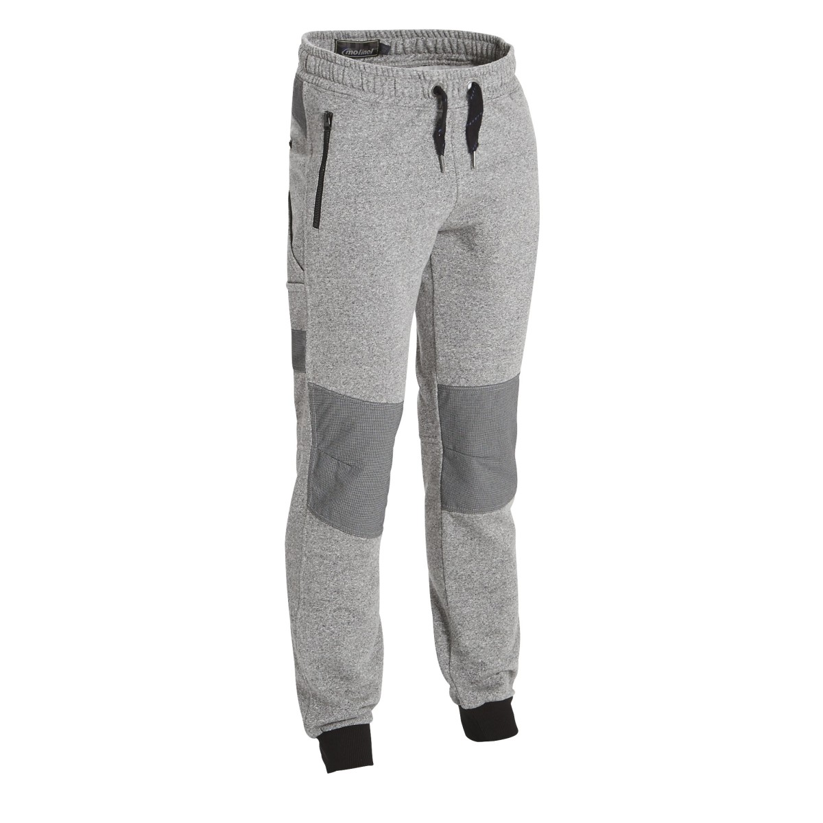Jogging en molleton avec renforts aux genoux et empiècement dos, 3 poches zippées, poche mètre / cutter renforcée.
