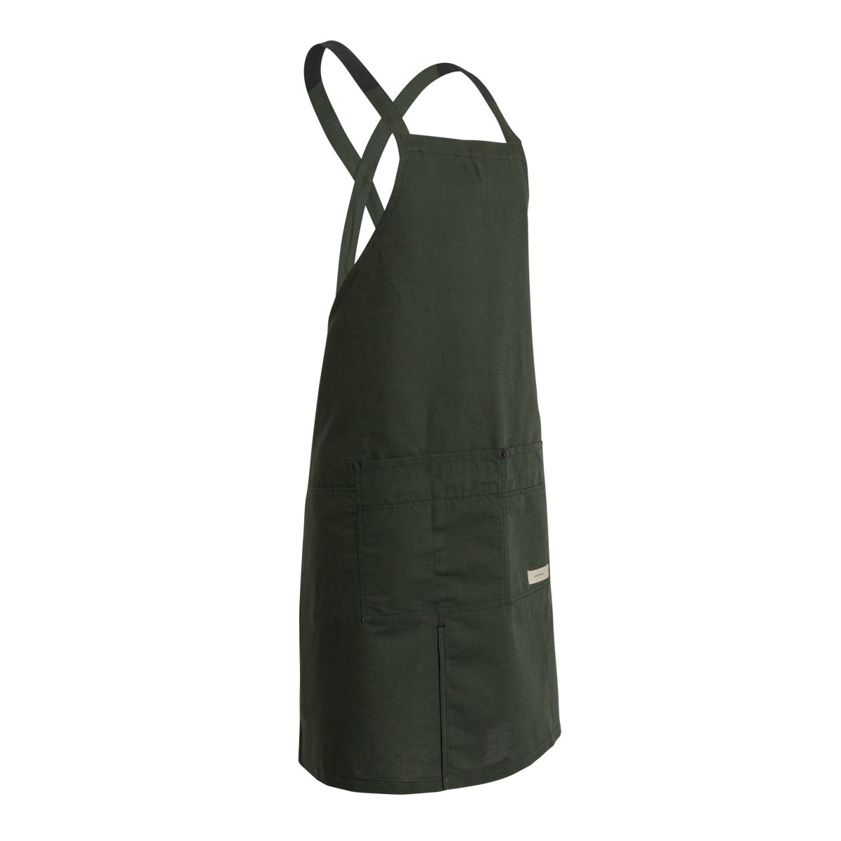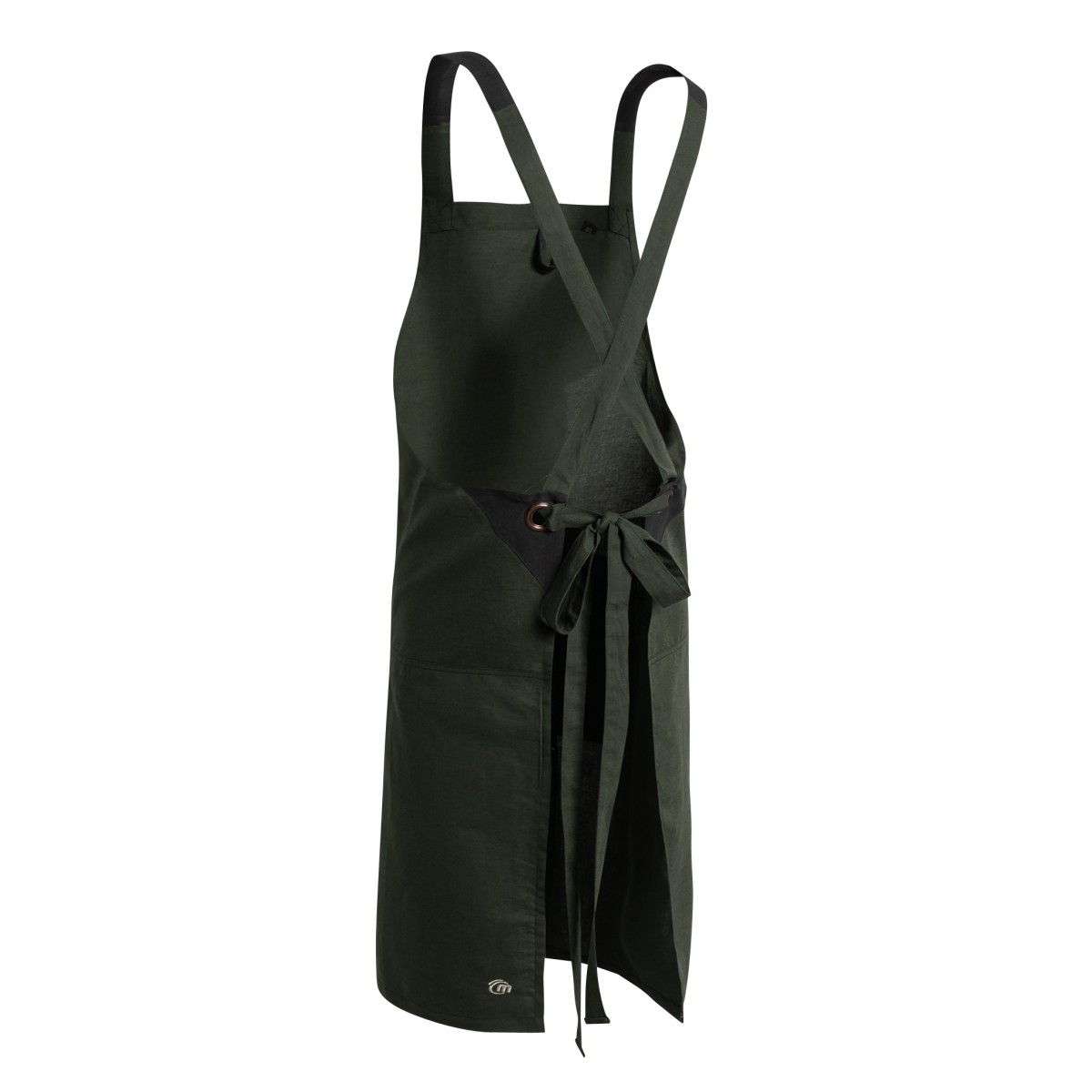 Tablier à bretelles en taille unique vert émeraude éco-responsable composé de coton et de lin.