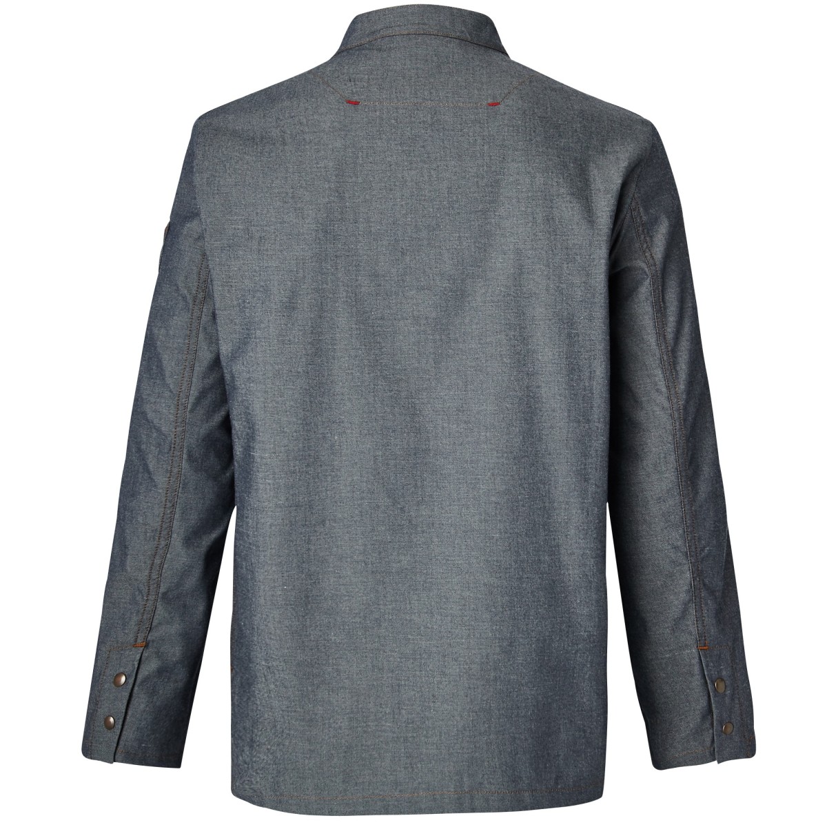 Col officier - Ouverture devant inclinée par pressions - Poche poitrine passepoilée - Poche manche avec compartiment stylo - Manche retroussables par patte de relevage pressionnée - Oeillets d'aération sous les bras - Fentes dos