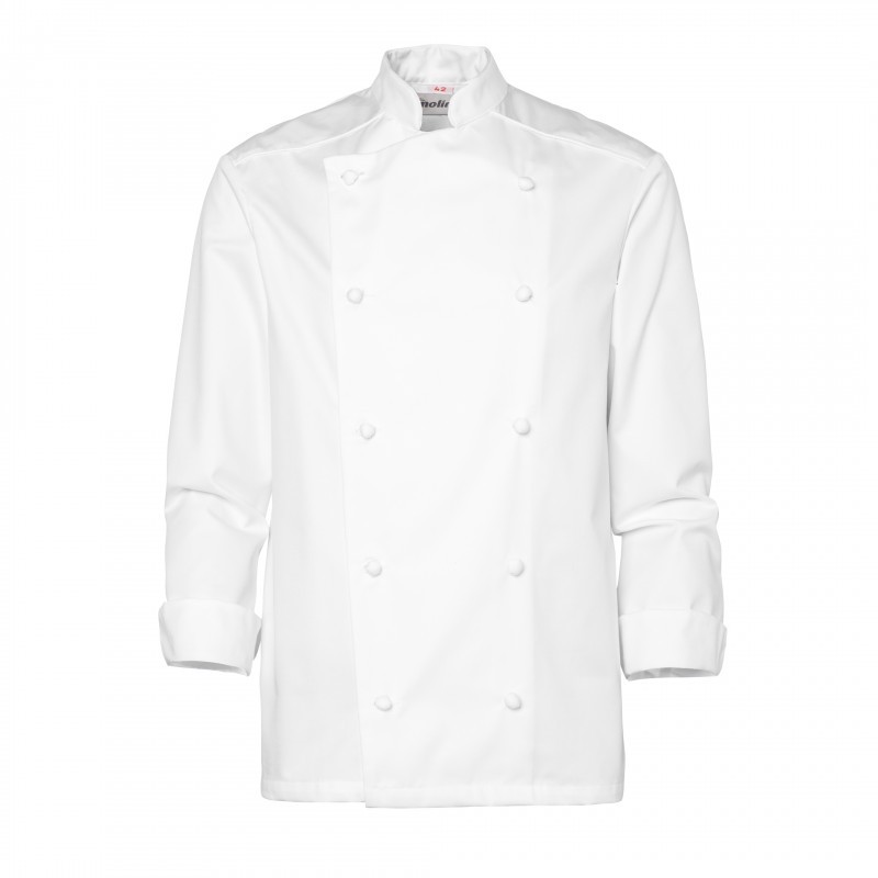 Une veste de cuisine classique et élégante : les 10 boutons boule sont faits main ! Entretien facile.
